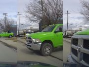 A pickup driver fails to see a dashcam owner approaching despite being able to see them from 200 feet away.