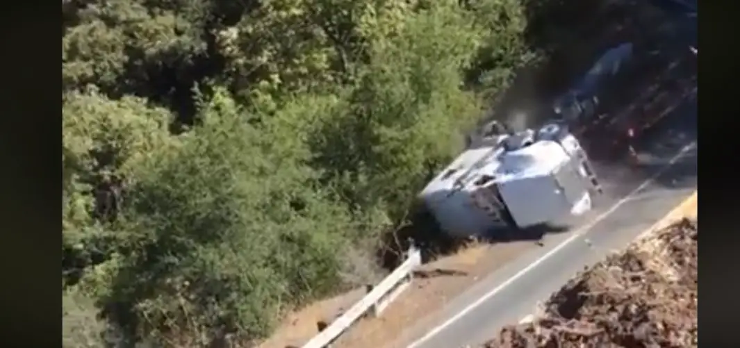 Highway 175 between Hopland and Lakeport is one of the shortest ways to get between the two cities without having to drive hundreds of extra miles up to Redwood Valley or down to Calistoga and around. This also makes it a popular choice for large tractor-trailer combinations to risk it to save a couple of hours, understandable when the shortcut is right there. But, as per Caltrans District 1 in a video they shared earlier today (Oct 12,2018) there’s a good reason they warn tractor trailers over 39 feet not to drive on Highway 175 at all. This tractor-trailer took a plunge into the deep canyon below and came out unscathed. Check out that horrifying video below.