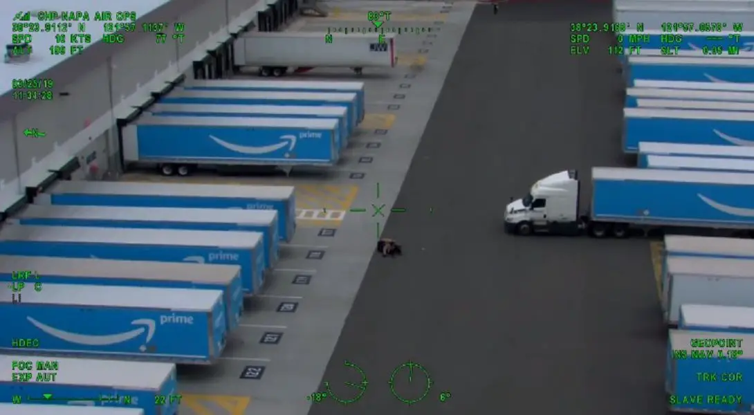 California police really landed their CHP helicopter smack dab in-between Amazon delivery trailers to assist in a takedown and arrest.