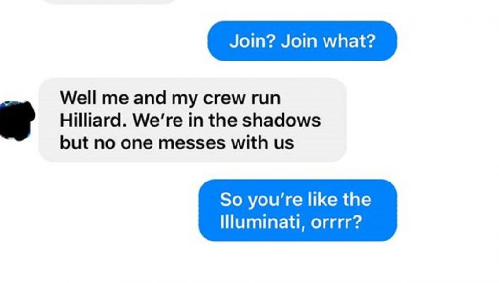 If you haven’t realized already, there’s no such thing as car gangs, this guy messaging Alex is a total loon, and this kingpin based out of Hilliard has too much time on his hands.