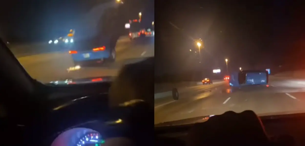 Illinois resident Mz. Deanna Smith caught the shocking moment earlier yesterday (May 18,2021) when a rogue wheel, rolling down I-80 near Gary, Indiana, collided with a Toyota Rav-4 driving in the same lane.
