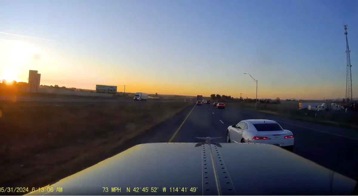 Semi driver and Redditor /u/WhatABerger shared some frustrating dashcam footage from I-84 in Wendell, ID showing the hare brained moment this driver in a white Chevrolet Camaro improperly merged, oblivious to a semi truck behind him.