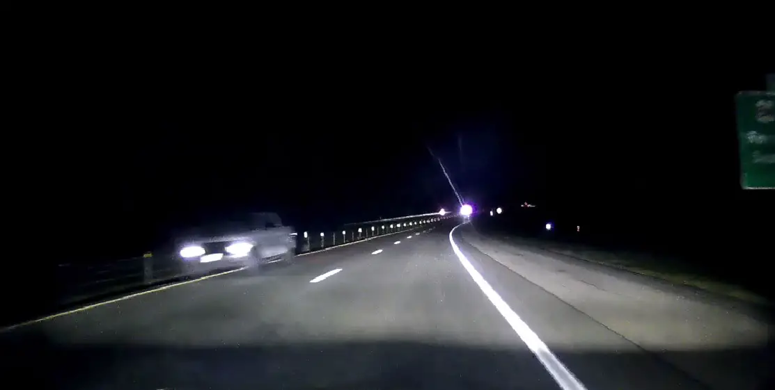 As the dashcam footage shows, OP is driving down I-25 when he sees the bright lights of a wrong-way driver headed towards him.