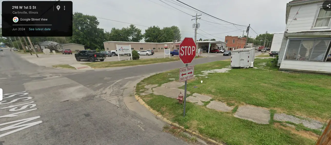 Carlinville commuter and Redditor /u/1Pancake0 shared dashcam footage from earlier last week (Aug 5, 2025) to the /r/IdiotsInCars subreddit showing a driver at this particular intersection failing to yield properly to him, in part, due to private property obstructing the view of traffic with the right of way.