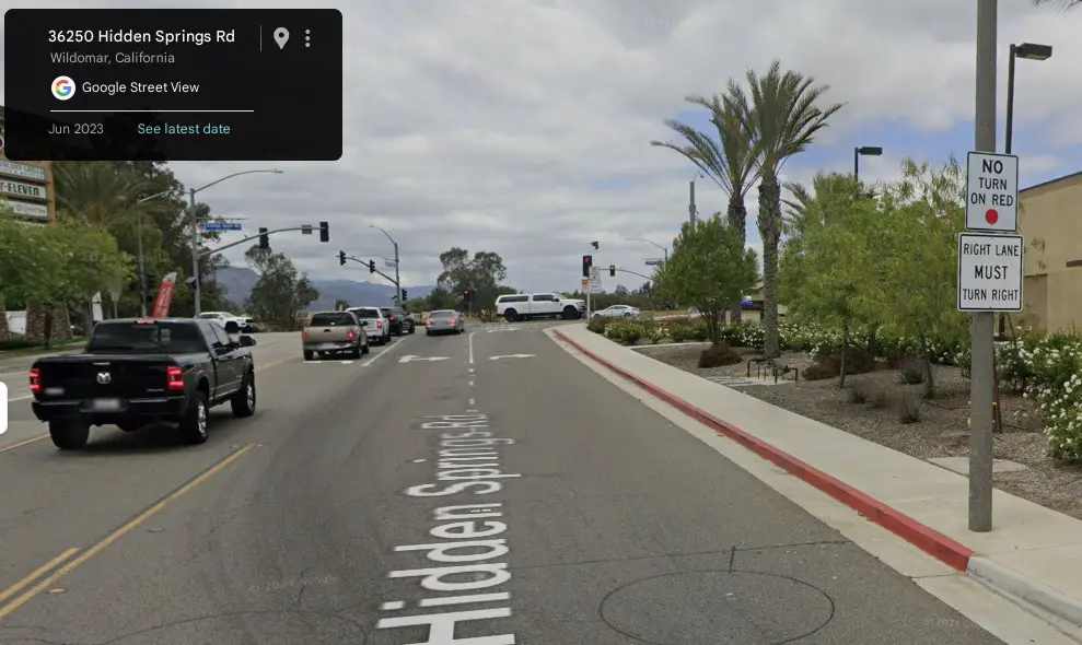 The incident happened at the intersection of Hidden Springs Road and Clinton Keith Road, as drivers exited the local Shopping Center at the Wildomar Square Office Suites (Exact location on Google Maps linked here.)