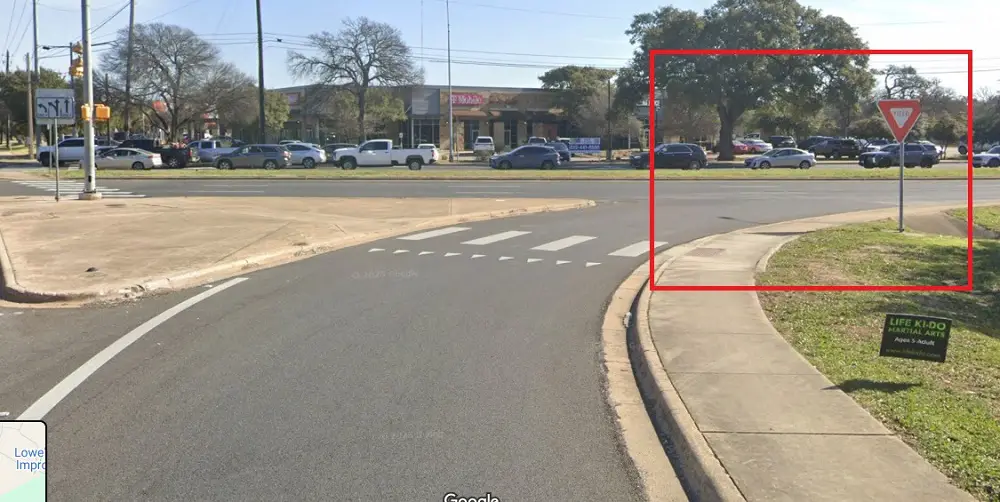 As the dashcam shows, OP is approaching the aforementioned intersection from William Cannon Dr.