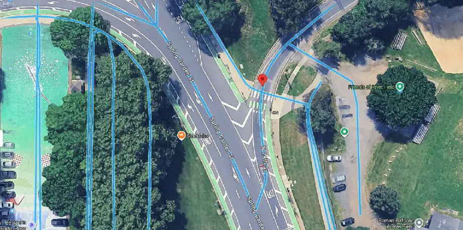 The incident happened where N 24th ST. merges from Spring Garden St. (exact location on Google Maps linked here and posted below.)