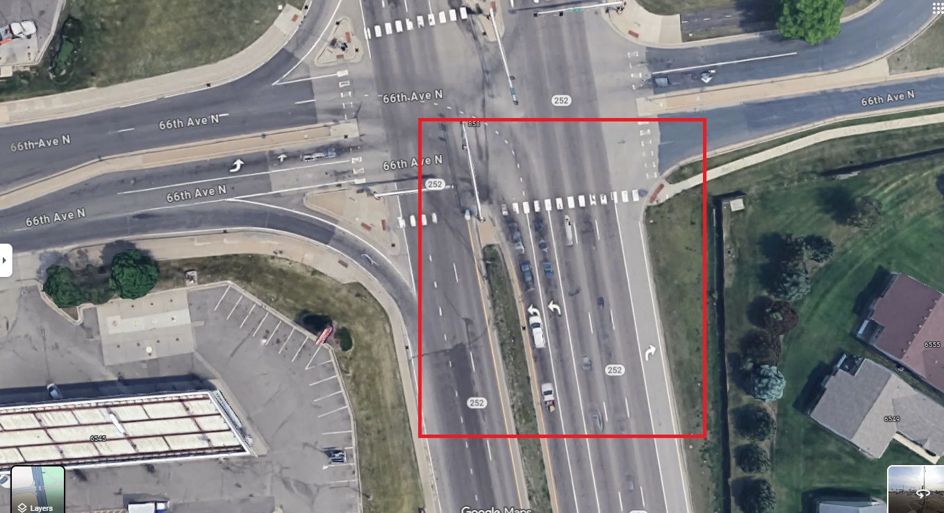 The incident happened at the intersection of MN-252 and 66th Ave N in Brooklyn Center (Exact location on Google Maps linked here.)