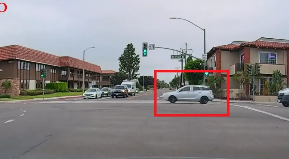 Orange County driver and Redditor /u/NyanBluu shared shocking dashcam footage from this Tustin intersection from earlier in October (Oct 3, 2025) to the /r/IdiotsInCars subreddit showing a driver in a Toyota Matrix blowing an extremely late red light that had been on for at least 10 seconds at that point.