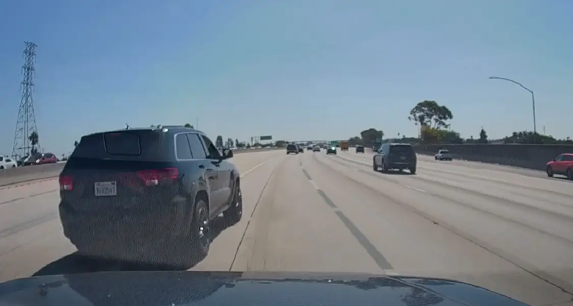 As the dashcam shows, OP is driving in the fast lane of the 110 when his rear dashcam picks up a driver in a black Jeep Grand Cherokee, likely an SRT, barreling towards him at speeds that are about 90+ MPH.