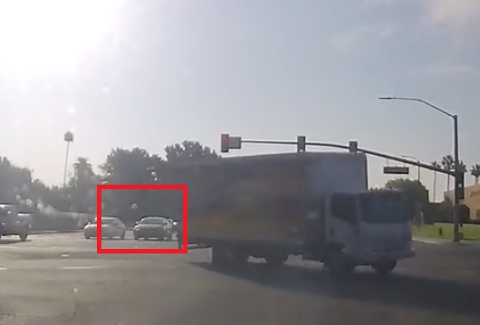 This driver, highlighted in red above, just assumes it’s still green when, as mentioned, the box truck driver set them up to run a red light inadvertently.