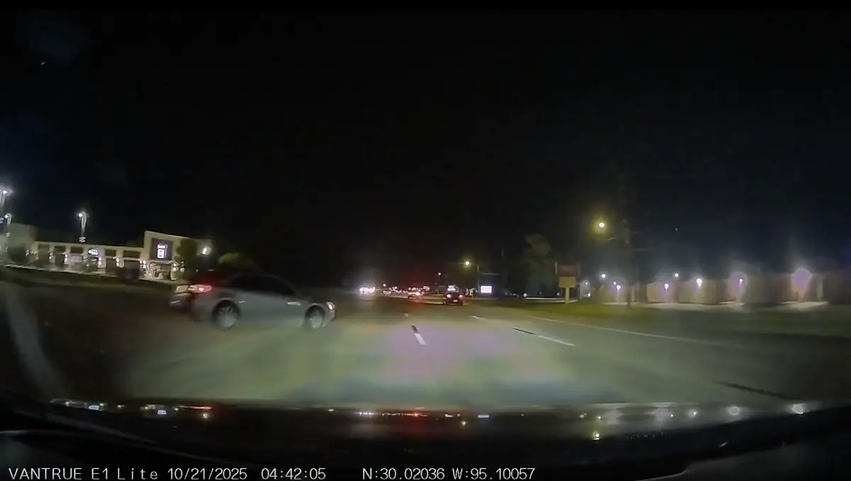 As the dashcam video shows, OP is driving along FM 1960 early in the morning when he approaches The Shops of Huffman shopping plaza to the left.