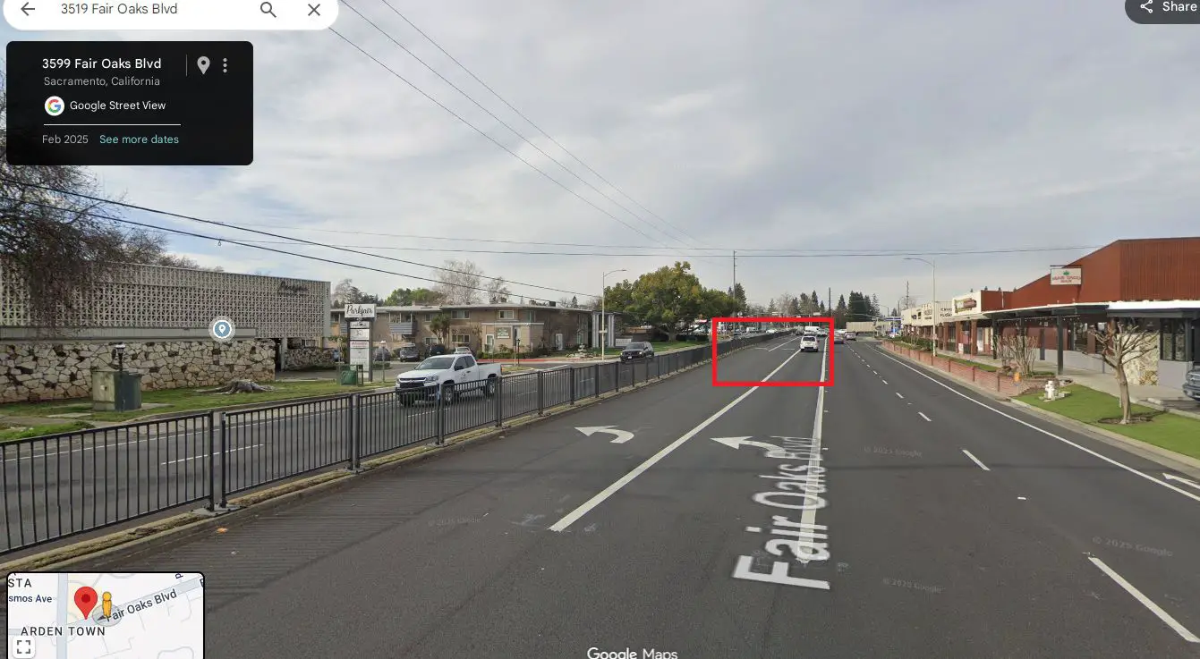 OP is stopped on Fair Oaks Blvd in one of the two (soon to be three) left turn lanes before the intersection with Watt Blvd (Exact location on Google Maps linked here.)
