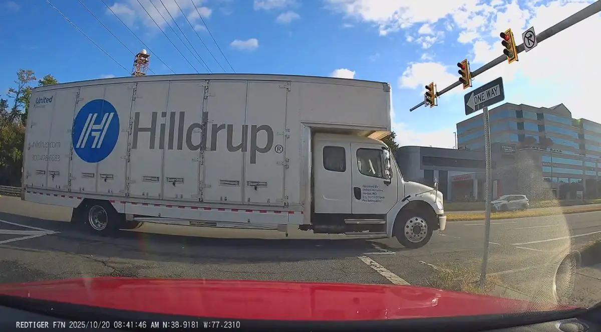 However, 3 seconds into the red light, a driver in a Hilldrip Box truck barrels on through.
