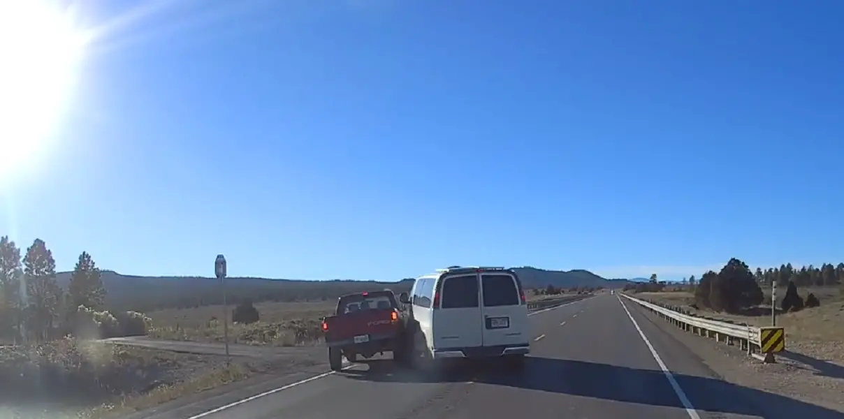 Suddenly, the driver in the Ranger, as mentioned, takes this as them wanting him to pass, which he attempts to do.