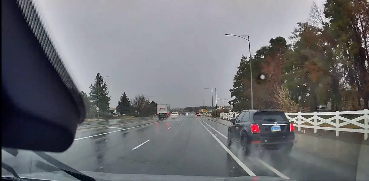 Reno driver and Redditor /u/BaitingTheMaster shared headshaking dashcam footage from earlier in November (Nov 17, 2025) to the /r/IdiotsInCars subreddit showing a Fiat 500 driver not only speeding, but using a bike lane to overtake, all while it’s soaking, raining wet.