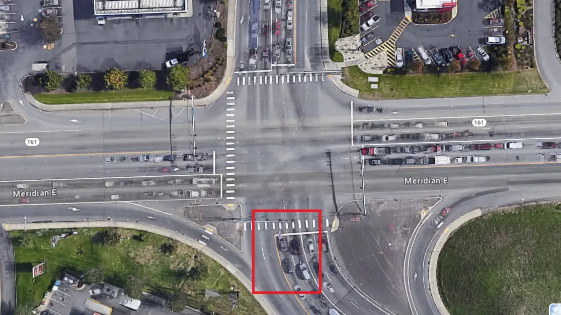 I’ve included a screenshot of the intersection below. As a reference, the car hauler is the outside of the two left turn lanes highlighted with the red square.