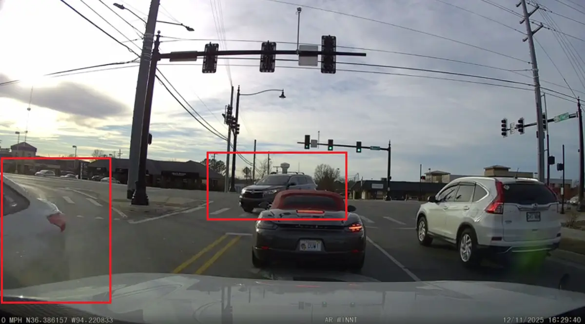 Bentonville-area driver and Redditor /u/endurable-bookcase-8 shared headshaking dashcam footage from this busy N. Walton Blvd. intersection from earlier last week (Dec 11, 2025) to the /r/IdiotsInCars subreddit showing a driver going through with a super-late red light run after at least one driver already ran the red right in front of them.
