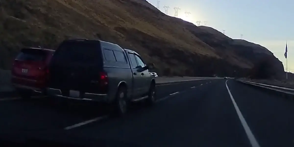 Wasco County commuter and Redditor /u/DankDogeMemesXBX shared headshaking dashcam footage from Interstate 84 to the /r/IdiotsInCars subreddit showing a pair of speeders squeezing into one lane to pass OP over what was likely a bit of road rage gone off the rails.