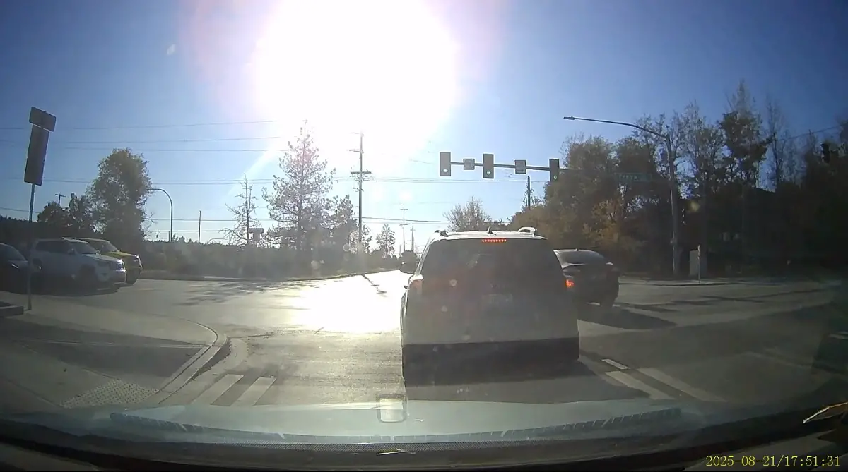 Spokane County-area driver and Redditor /u/GriffinGrandiose shared headshaking dashcam footage from earlier last year (Aug 21, 2025) to the /r/IdiotsInCars subreddit showing an indecisive driver at this busy Spokane intersection setting themselves up for an accident.