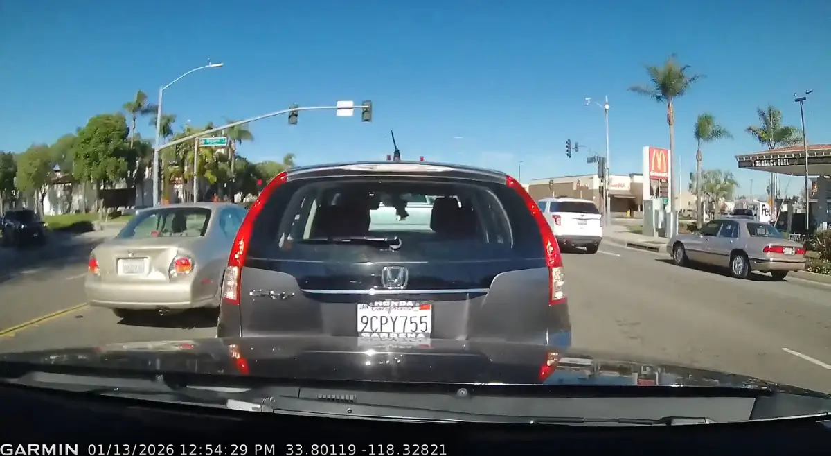 SoCal driver and Redditor /u/dimsum4u shared headshaking dashcam footage from this busy Torrance intersection from earlier in January (Jan 13, 2026) to the /r/IdiotsInCars subreddit showing an elderly driver in their Honda drive into a vehicle then, when they backed up to self-correct, they hit the gas even harder, backing into OP’s front bumper, too.