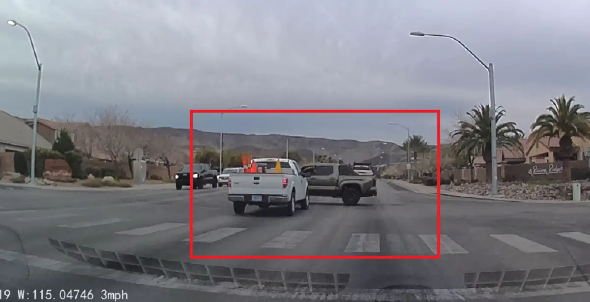 Thankfully, the F-150 driver brakes in time, avoiding what would’ve been one expensive and possibly injurious collision.