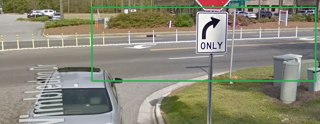 As the view above shows, a driver on Wimbledon Dr. turns right and, in an attempt to head south on Arlington, slips into the nearest turn lane, except it’s the wrong one meant for northbound traffic.