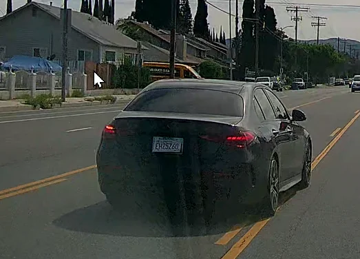 The Mercedes driver slips back onto Winnetka headed the right way, but does it again, overtaking an SUV in front of them.