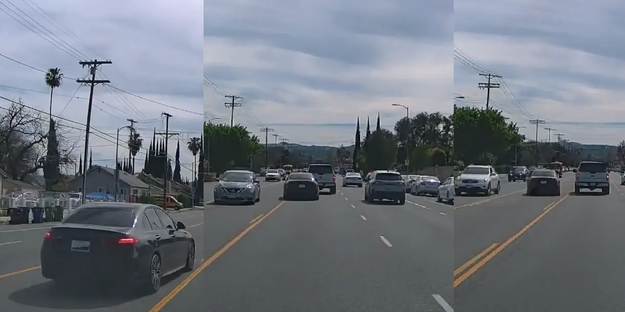 Los Angeles-area driver and Redditor /u/D10SLM shared headshaking dashcam footage from earlier in February (February 24, 2026) to the /r/IdiotsInCars subreddit showing a driver in their Tesla using Winnetka Ave’s center turn lane like their own personal Autobahn.