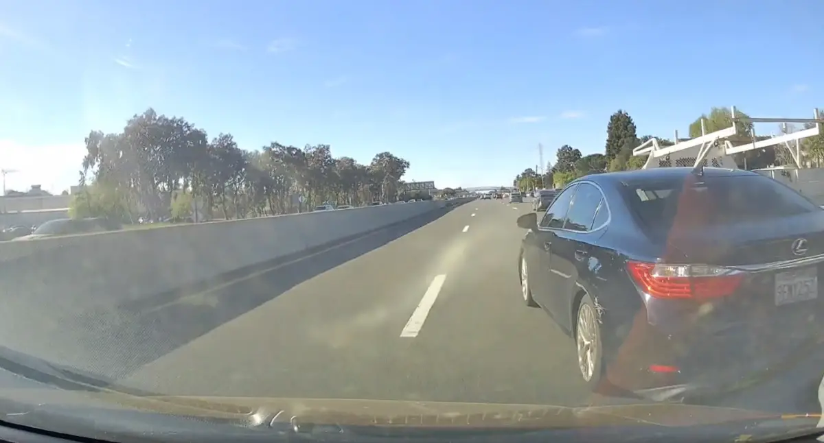 Bay Area driver and Redditor /u/Fundevin shared headshaking dashcam footage from earlier in March (Mar 1, 2026) to the /r/IdiotsInCars subreddit showing an insane driver in a Lexus brute forcing his way between two vehicles, nearly causing a multi-vehicle collision that likely would’ve turned into a hit-and-run.