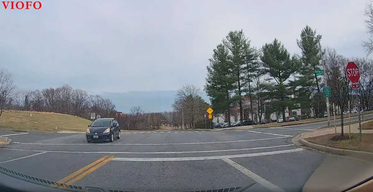 Montgomery County driver and Redditor /u/somebody_throw_a_pie shared headshaking dashcam footage from earlier in March (Mar. 8, 2026) to the /r/IdiotsInCars subreddit showing a driver in a Honda Fit blasting through this 4-way stop, showing no signs of slowing.