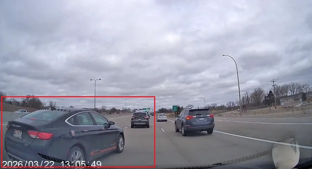 Ramsey County commuter and Redditor /u/GeorgiaOnMyMind shared headshaking dashcam footage from earlier in March (Mar 22, 2026) to the /r/IdiotsInCars subreddit showing a reckless, no-good driver dropping a no-look, multi-lane change, forcing OP off the road onto the emergency shoulder.